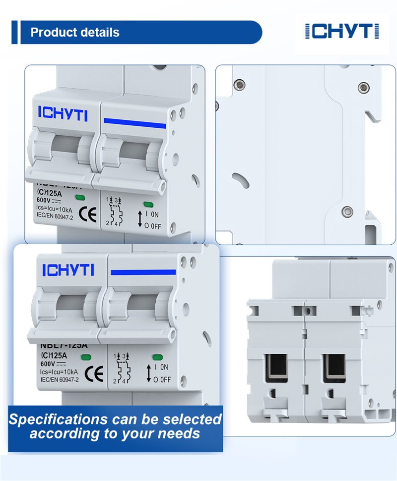 सौरऊर्जा संचयन आणि नवीन पायाभूत सुविधांच्या क्षेत्रातील ग्राहकांच्या अर्जाच्या गरजांना प्रतिसाद म्हणून, ICHYTI निर्मात्याने नवीन NBL7-125A नॉन ध्रुवीयता 125A DC MCB लाँच केले आहे. हा DC सर्किट ब्रेकर DC1000V/DC600V च्या रेट केलेल्या ऑपरेटिंग व्होल्टेजसह आणि 80A ते 125A च्या रेट केलेल्या वर्तमान श्रेणीसह सर्किट परिस्थितींसाठी योग्य आहे. हे डीसी सिस्टमसाठी शॉर्ट-सर्किट संरक्षण आणि ओव्हरलोड संरक्षण कार्ये साध्य करू शकते, तसेच सर्किट अलगाव आणि नियंत्रण म्हणून देखील कार्य करते.